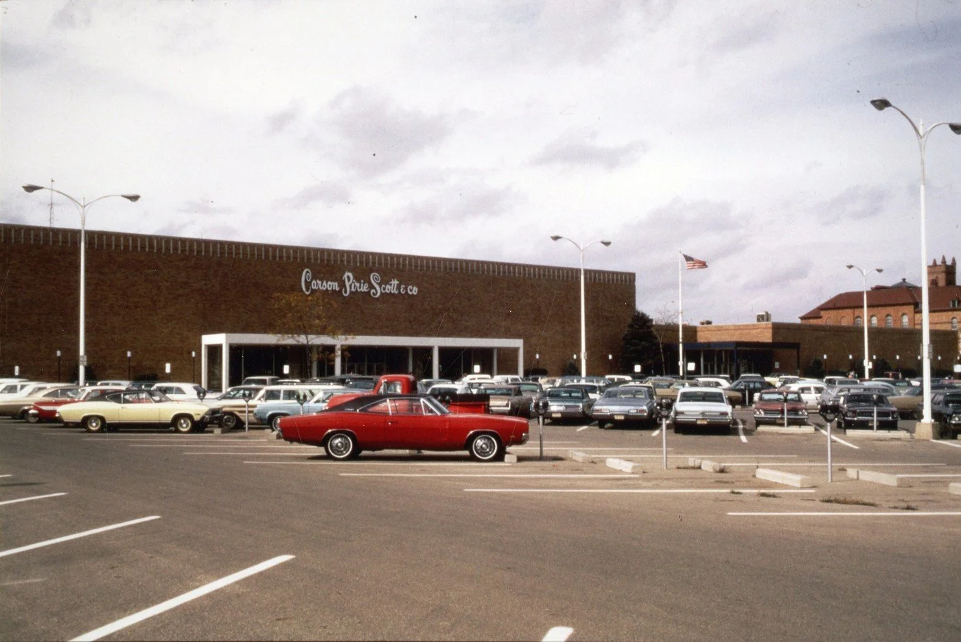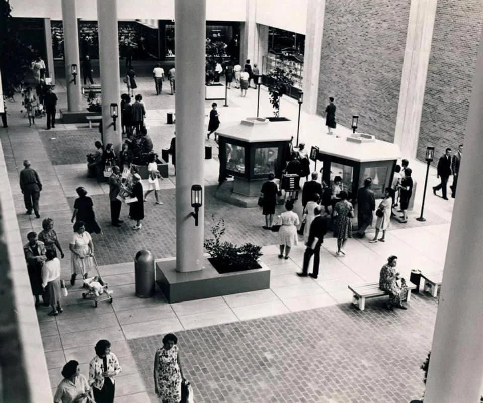 Lincoln Square Mall, designed by renowned architect Victor Gruen, opened its doors on September 17, 1964. Built as an extension to the 1923 Urbana-Lincoln Hotel, the mall was originally planned as an outdoor pedestrian space before becoming a fully enclosed shopping center. Its “pinwheel” design featured four main entrances from the North, East, South, and West, making it unique compared to traditional malls. At the time, it was the largest construction project of its kind, spanning nine city blocks while preserving historic surrounding buildings.